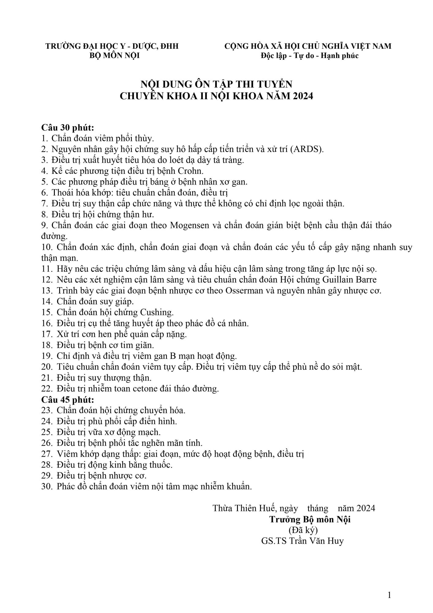 NỘI DUNG ÔN TẬP TUYỂN SINH CKI, CKII