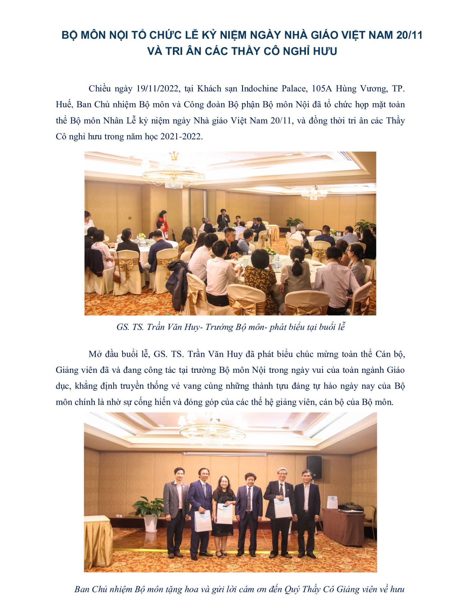 BỘ MÔN NỘI TỔ CHỨC LỄ KỶ NIỆM NGÀY NHÀ GIÁO VIỆT NAM 20/11 VÀ TRI ÂN CÁC THẦY CÔ NGHỈ HƯU NĂM 2022