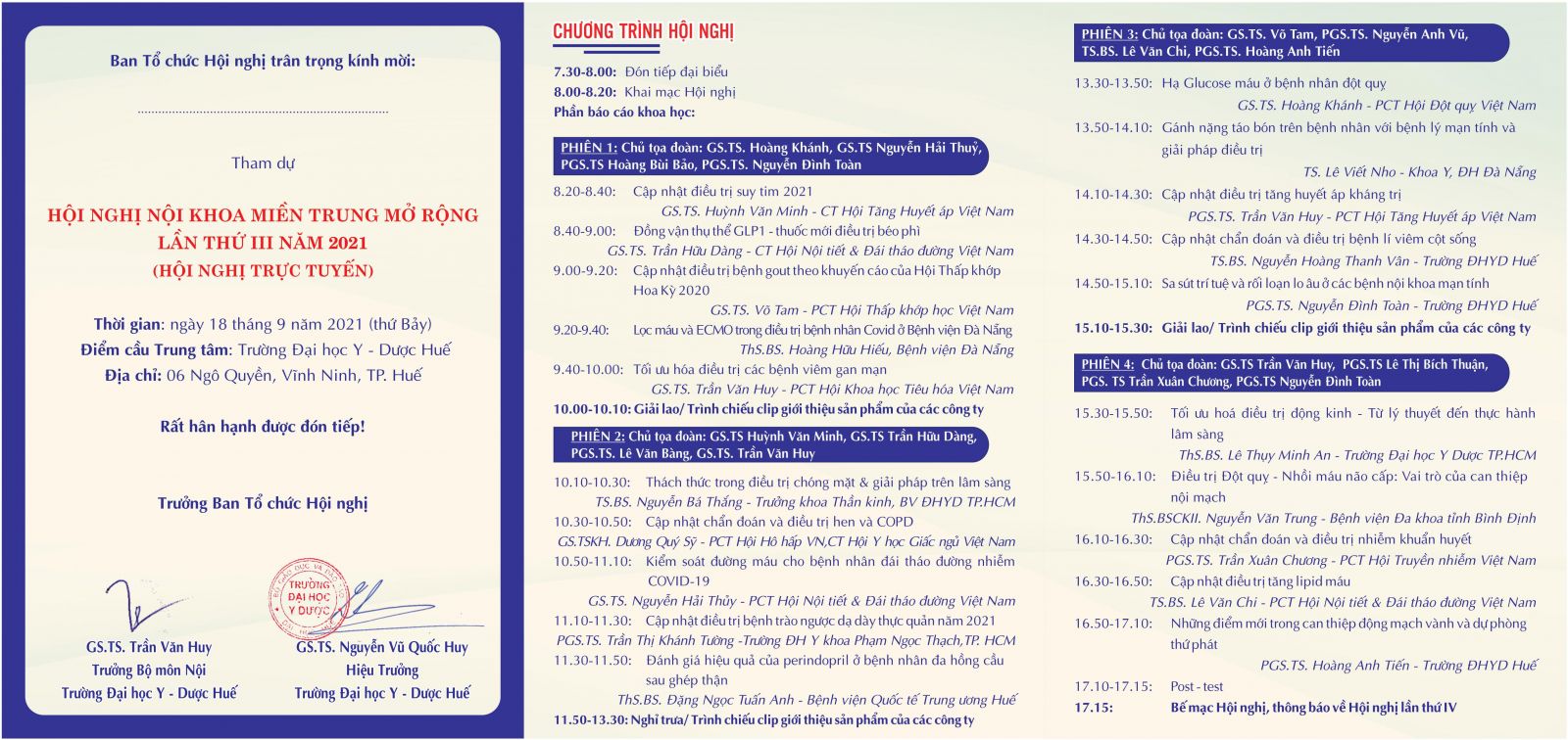 CHƯƠNG TRÌNH HỘI NGHỊ NỘI KHOA MIỀN TRUNG MỞ RỘNG LẦN THỨ III NĂM 2021