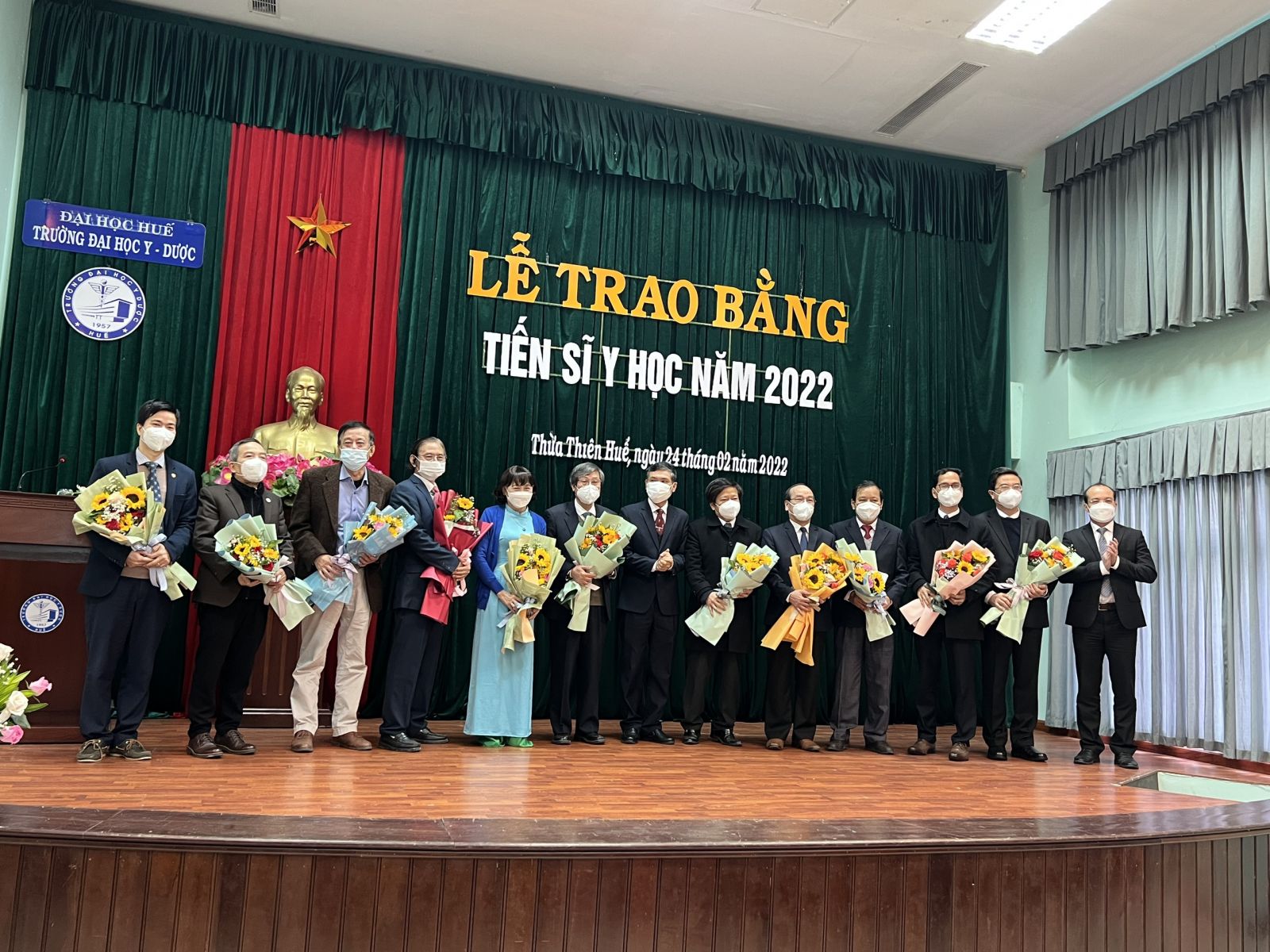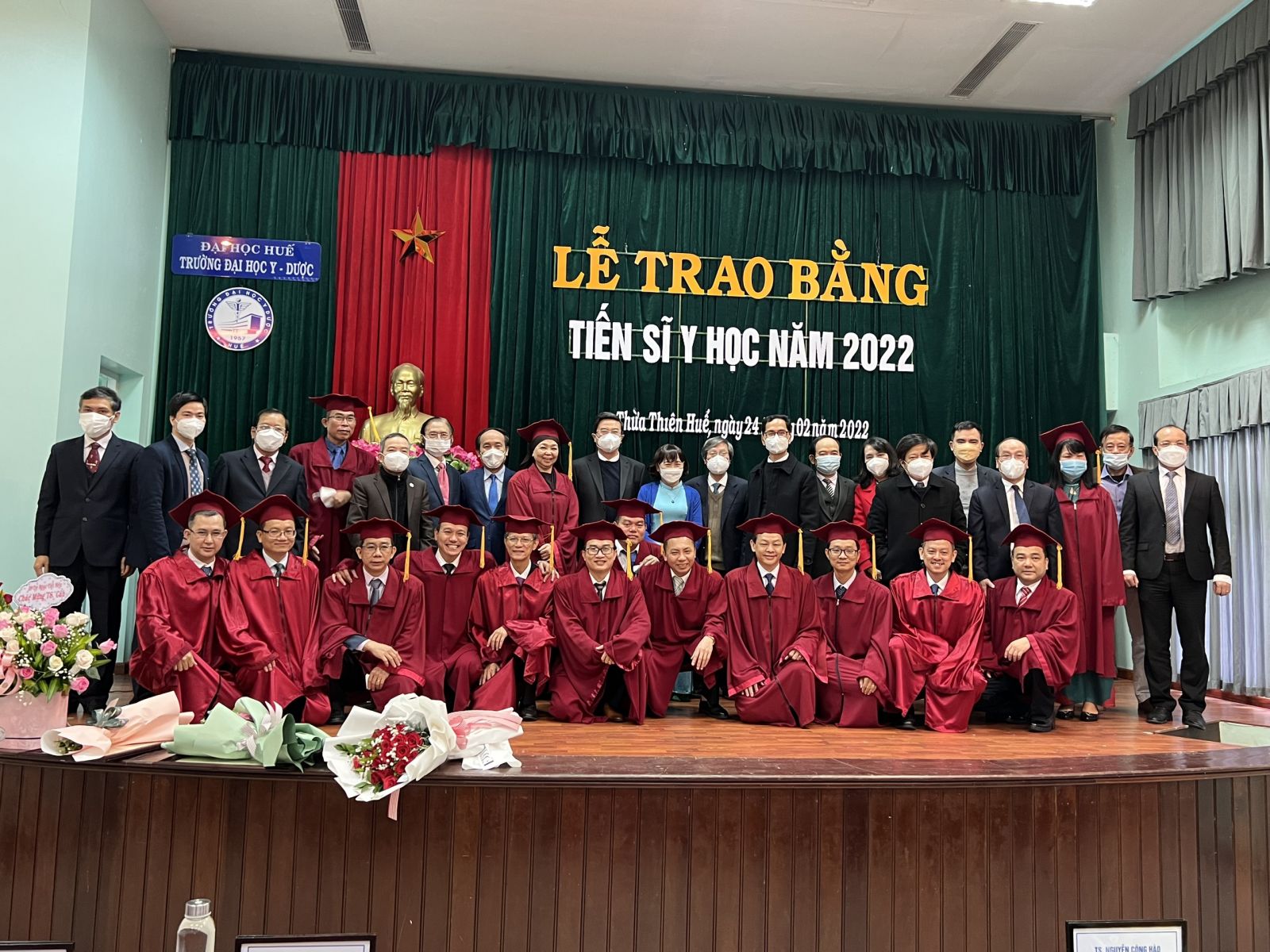 Sáng ngày 24 tháng 2 năm 2022, tại hội trường Quốc tế, khoa y tế Công cộng, Trường Đại học Y - Dược đã tổ chức Lễ tốt nghiệp và trao bằng Tiến sĩ Y học cho 16 tân tiến sĩ, trong đó đặc biệt Bộ môn Nội vinh dự có đến 11 nghiên cứu sinh đã hoàn thành chương trình đào tạo Tiến sĩ chuyên ngành Nội khoa tại Trường (Mã số: 9 72 01 07).