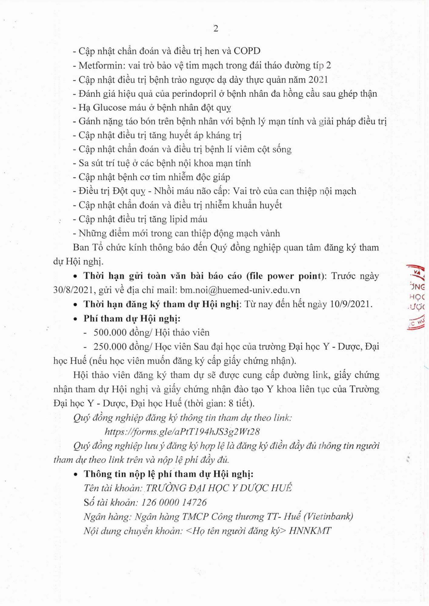 THÔNG BÁO SỐ 2 HỘI THẢO KHOA HỌC CẬP NHẬT CÁC TIẾN BỘ TRONG CÁC CHUYÊN NGÀNH NỘI KHOA 2024