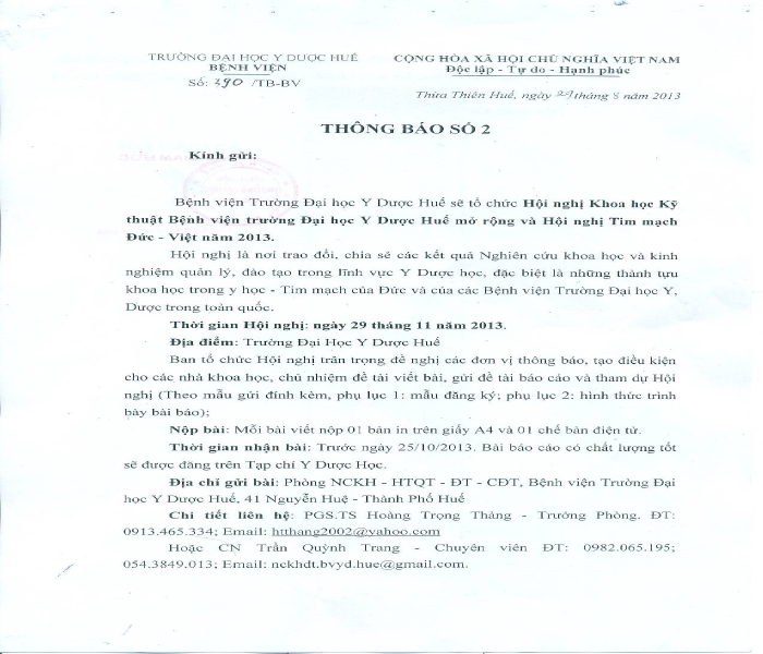 Thông báo số 1 Hội nghị tim mạch Miền Trung - Tây Nguyên