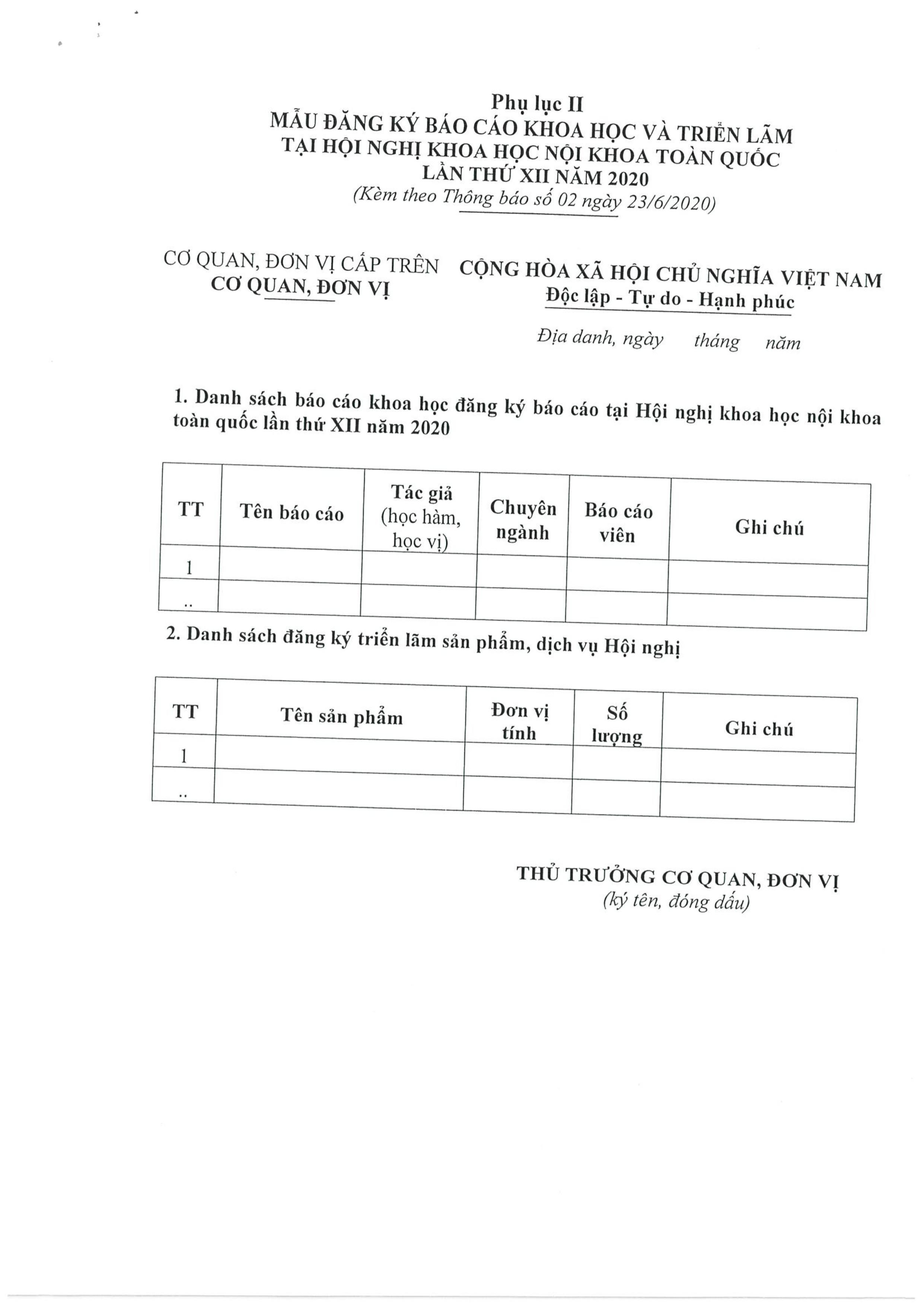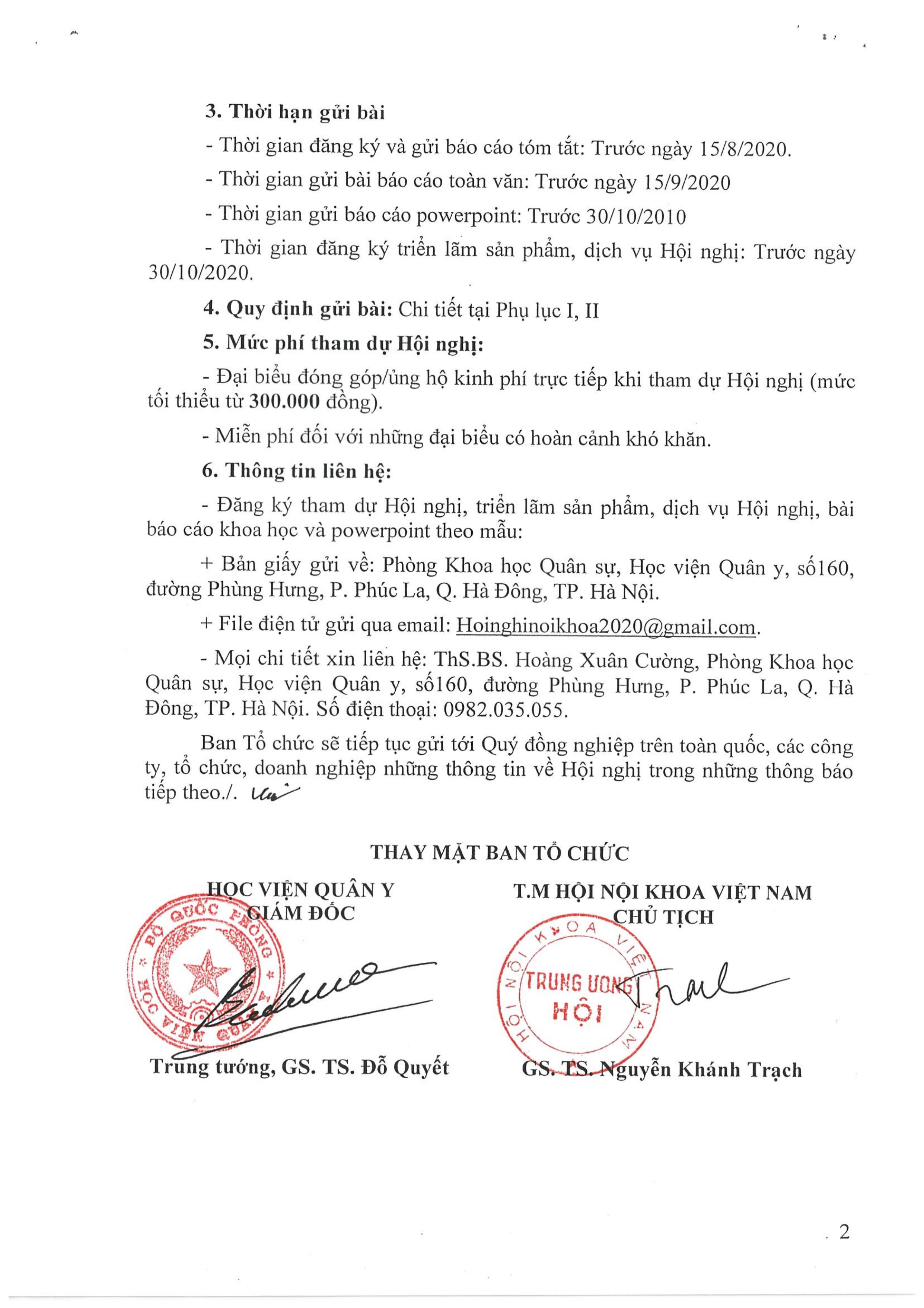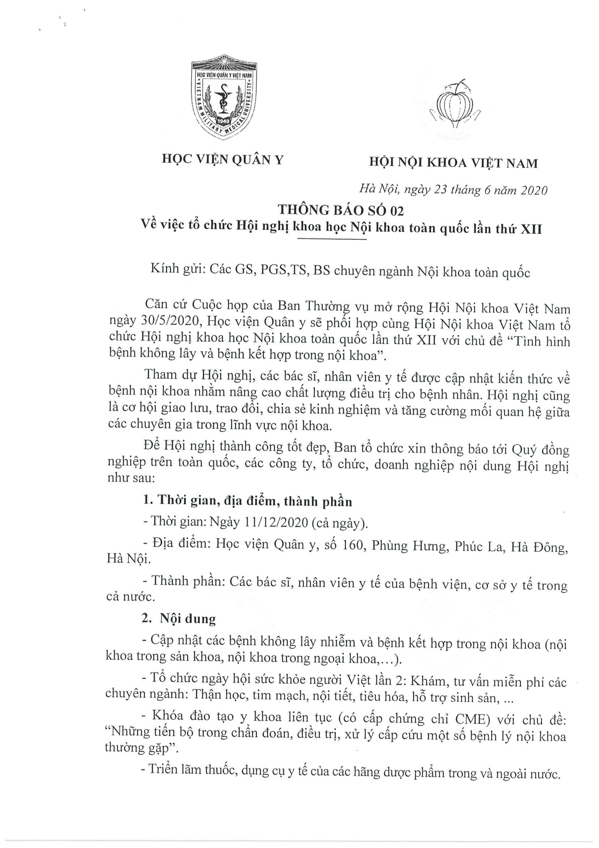 THÔNG BÁO SỐ 2 HỘI NGHỊ NỘI KHOA MIỀN TRUNG MỞ RỘNG 2020